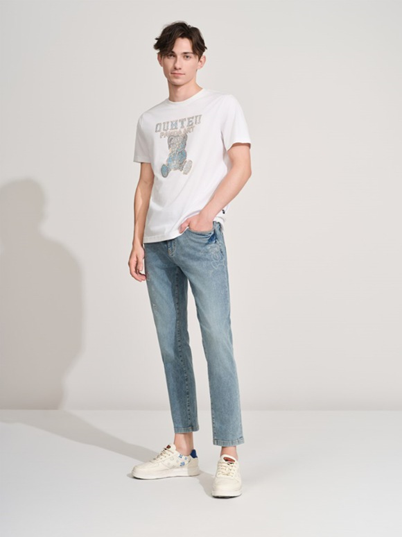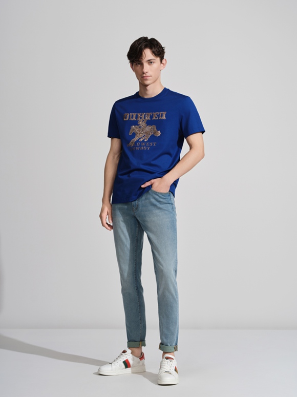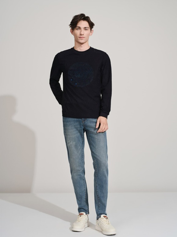 以精梳棉質(zhì)重塑活力邊界,剪裁利落貼合身形,釋放都市精英的從容氣場。淺色水洗丹寧褲以恰到好處的垂墜感平衡視覺重心,從通勤會議到周末社交,游刃有余,自信而優(yōu)雅。